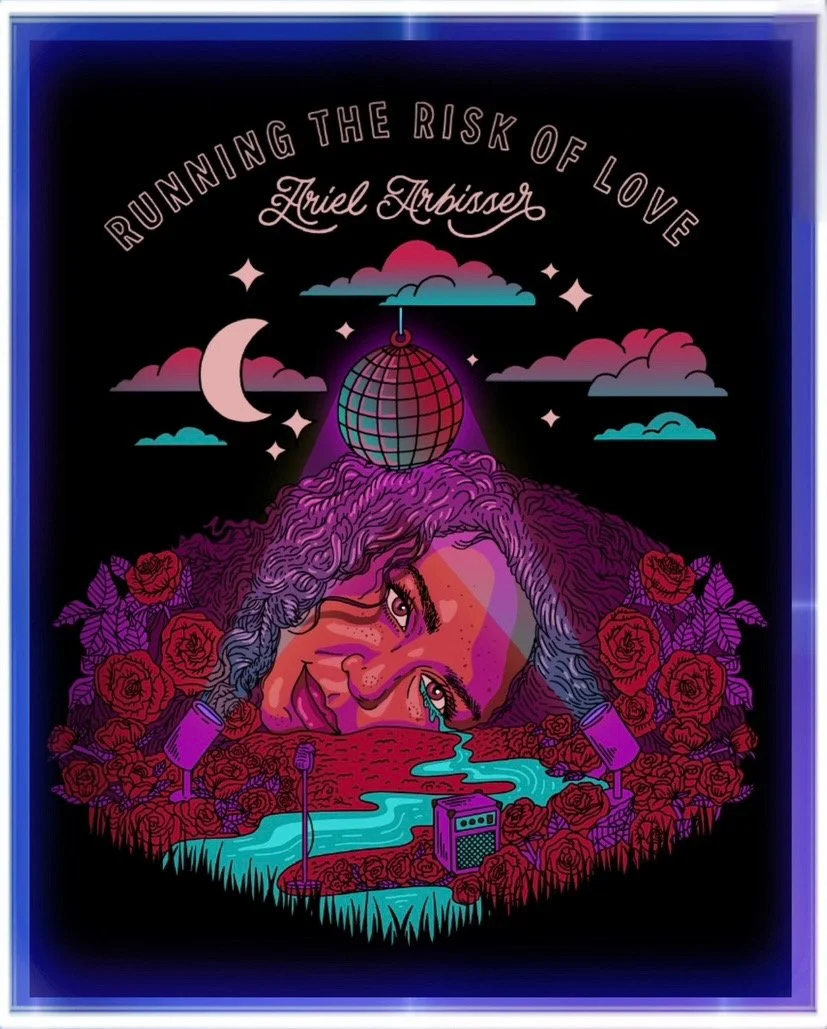 Colorful text reads “Running the Risk of Love” and “Ariel Arbisser